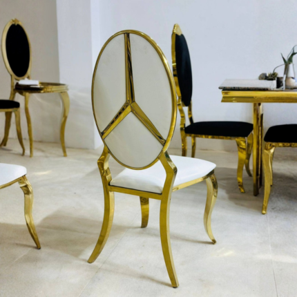 Crafted for both style and comfort, the padded seat and supportive backrest provide a comfortable seating experience, while the sturdy metal legs ensure durability and long-lasting use. Whether used as a dining chair or a decorative accent piece, this chair elevates any interior with its luxurious appeal.